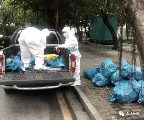 (我司员工在进行医疗废弃物清理运送工作)