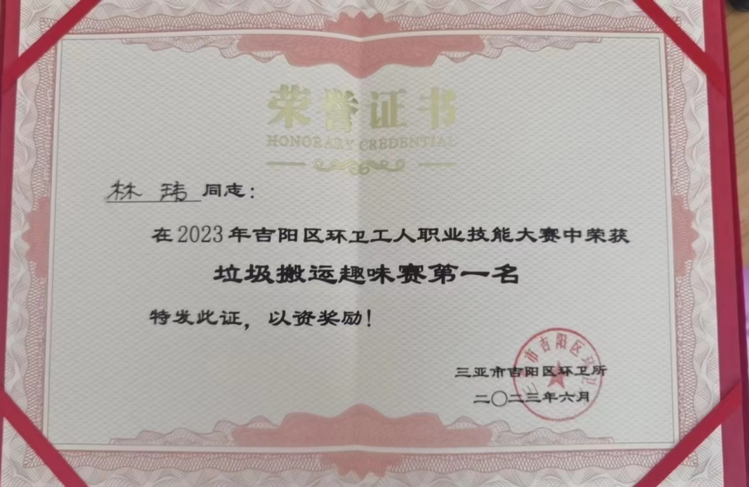 【喜报】森沐环境在2023年度吉阳区环卫工人职业技能大赛中获得垃圾趣味搬运赛一等奖
